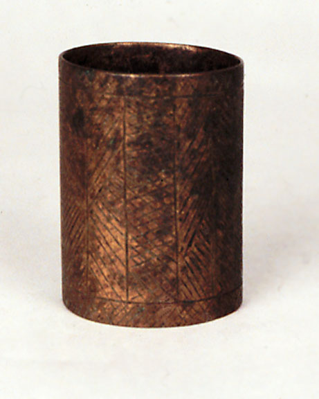 - This brass arm cuff of cylindrical form with an engraved linear design is from the Dengese of Democratic Republic of Congo (formerly Zaire).