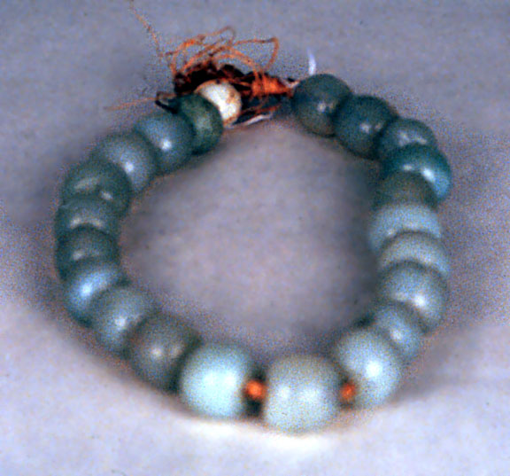 These large dichroic glass "moon beads" are possibly 18th-century Venetian.