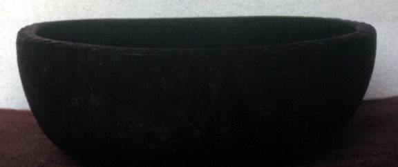 This wood bowl from West Africa is of hemispherical form, with a notched rim and fine patina.