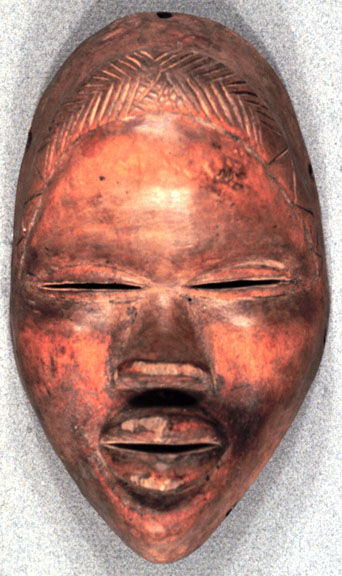 This miniature Dan mask has high cheek bones and a fine patina.