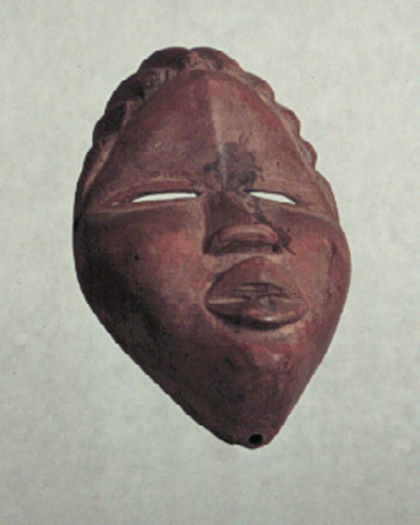 This Guere miniature passport mask has high cheekbones. With stand. [Ivory Coast/Liberia.]