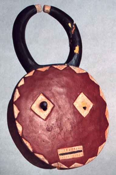 This Baule Guli Society mask is a round Kple Kple mask from the Baule Bouake district. It is well carved and has red pigment (male).