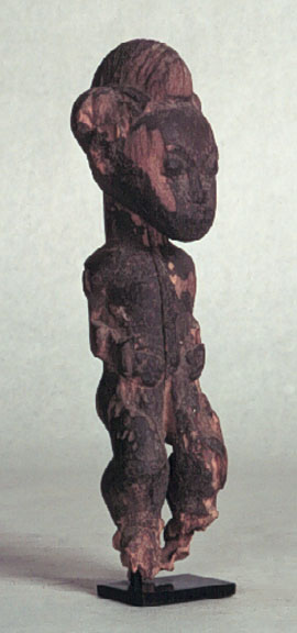 This finely carved, Baule standing male figure has a good use patina, but is eroded in several areas. With stand.