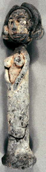This very rare Poupee (doll) fetish, female, constructed on a core of wood using grass, manure and clay, is hand molded and fired.