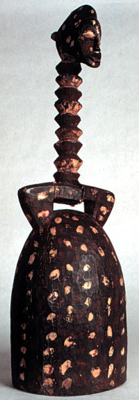 This Senufo, Deguele male form headdress/helmet mask has kaolin spotted offerings and a wear patina.