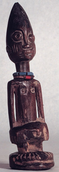 The twin birth rate among the Yoruba is proportionately high compared to other geographic regions. Because twins double the financial burden, twins born in poor families were formerly put to death. The ruling families, however, instituted a twin cult und... This Yoruba male ere ibeji figure has camwood powder, beads, and a good patina.