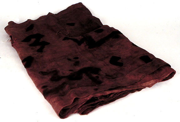 This Bushoong textile Ntshakhas appliqued geometric designs in brown on cream.