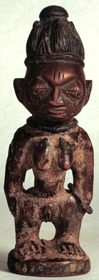 The twin birth rate among the Yoruba is proportionately high compared to other geographic regions. Because twins double the financial burden, twins born in poor families were formerly put to death. The ruling families, however, instituted a twin cult und... This Yoruba ere ibeji female figurehas beads, one bracelet, camwood powder, and a fine handling patina.