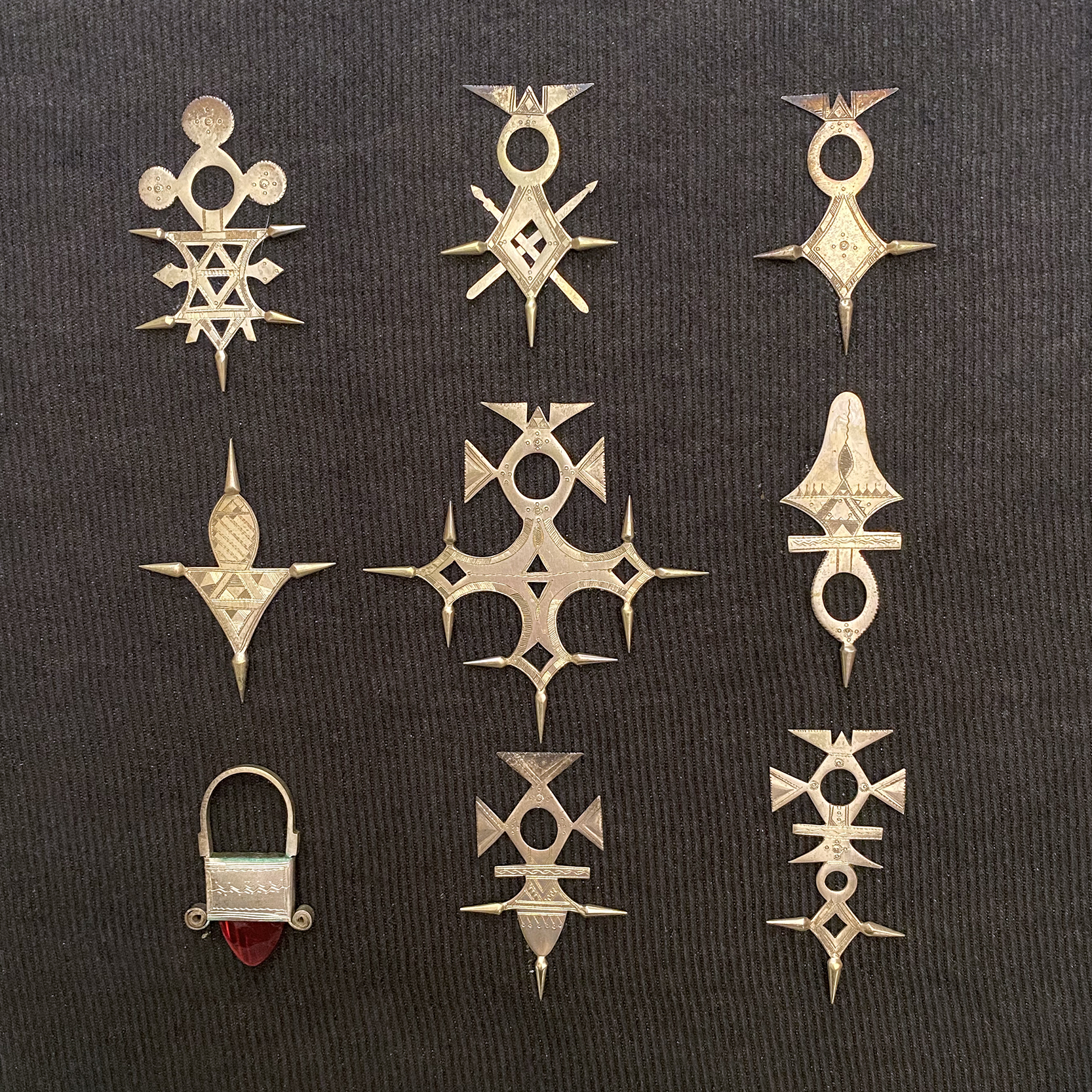 - These silver-colored crosses are the most popular category of jewelry made by the Tuareg of Niger. The geometrical designs, most with a point at the bottom and ring at the top seldom look like a traditional cross. There are twenty-one basic Agadez cross designs with variations for each. Nine basic designs appear on each of these two boards.