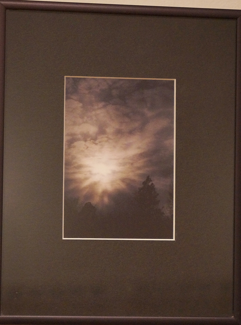 Black wood frame, black mat board. On back 01-01-01. 2001. Framed by University Frame Shop