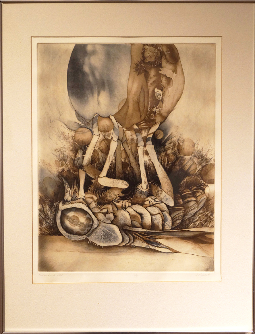 Dead Fly. Monochrome blue and sepia colored print. Silver metal frame.