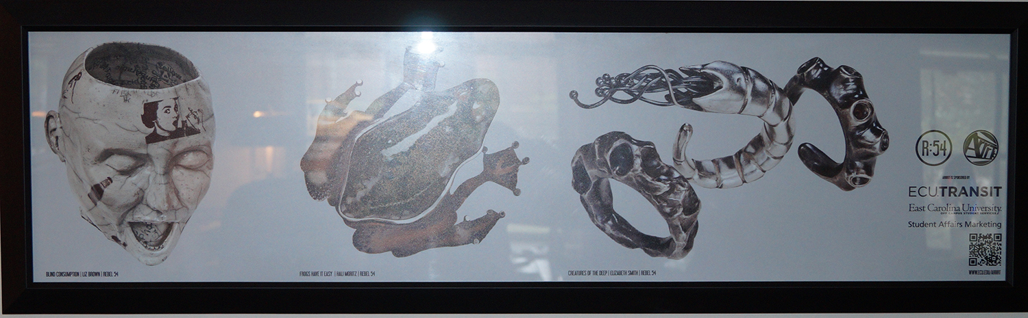 ECU Transit poster of artwork from Rebel magazine. 3 featured artists.