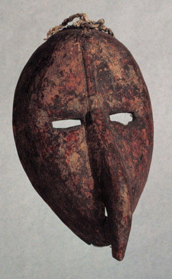 This Dan Wobe mask has rectangularly opened eyes and nose terminating in a beak below the mouth, and residual fabric from the costume attached at the top. It hasuse encrustation and a fine use patina.